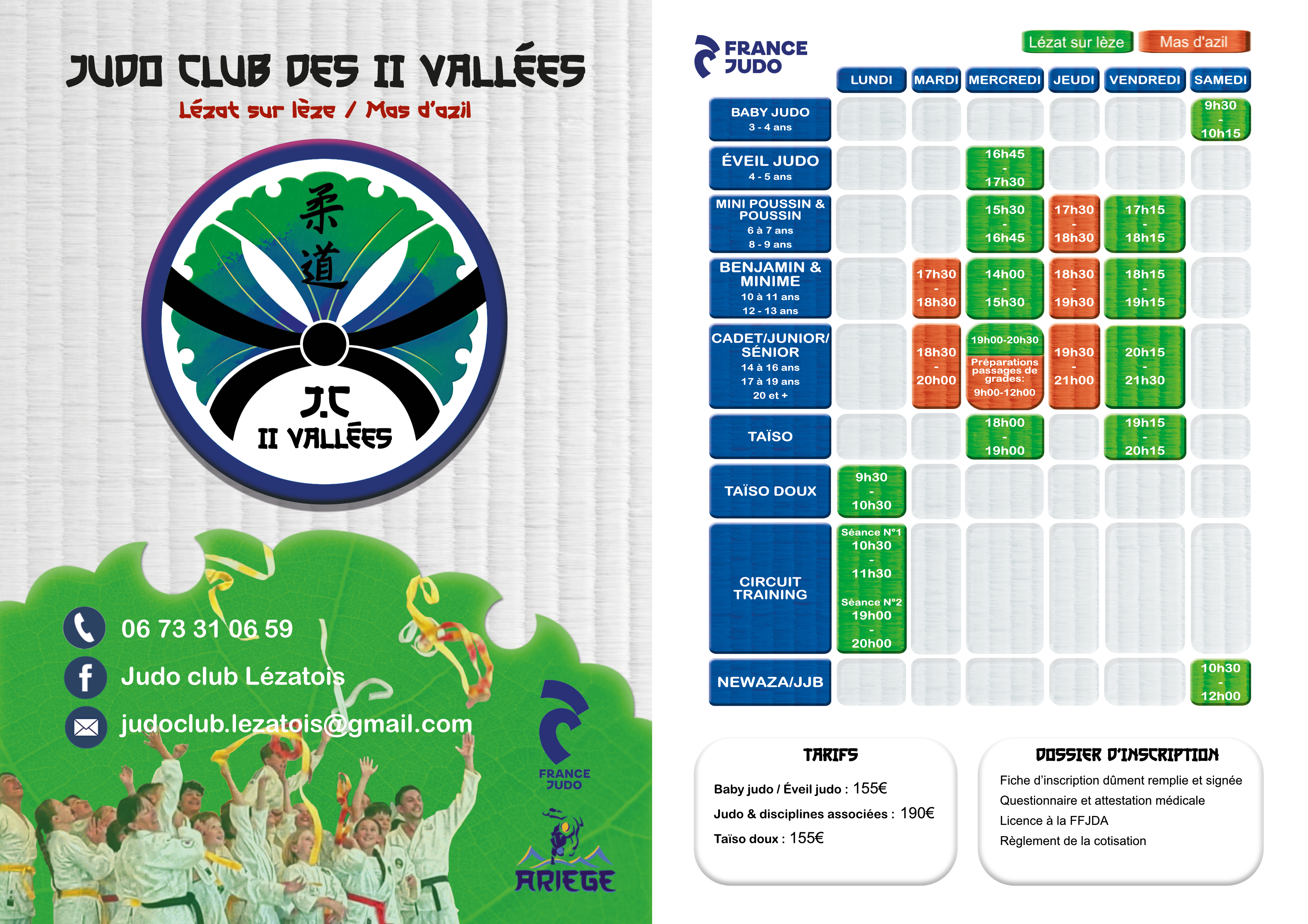 Planning des cours du judo club des 2 vallées