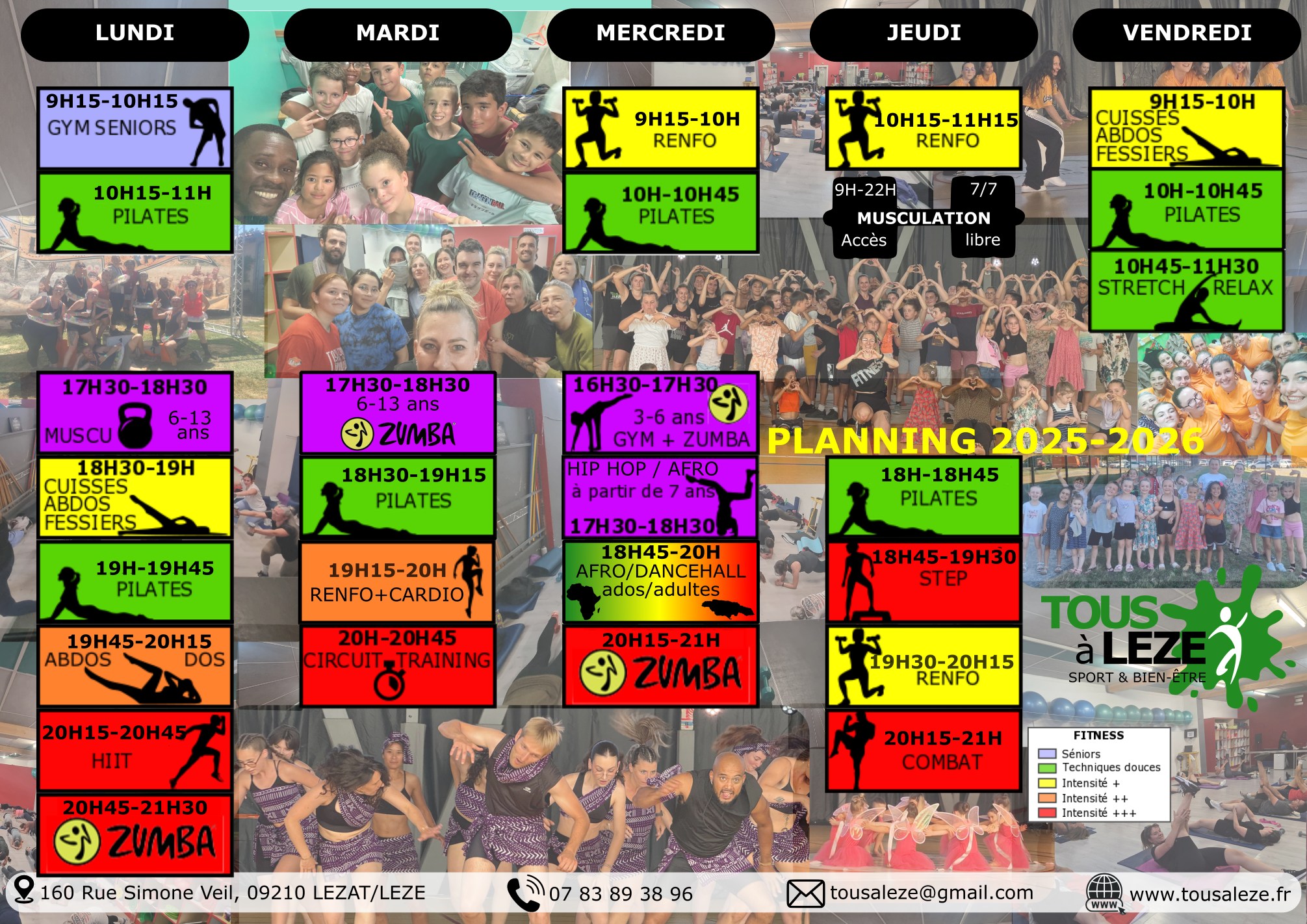 Multiactivities, Various sports, Dance, Fitness, Stretching, Aerobic, Pilates, Zumba, bodybuilding, Fitness, Cross training, Soft gym, Weightlifting